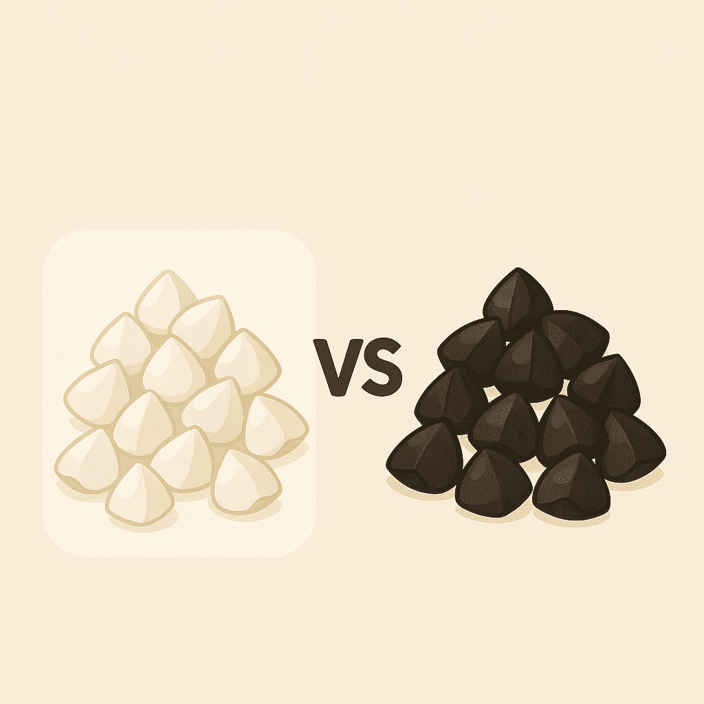 1️⃣ 메밀 껍질(가루가 되기 전)은 검정 또는 짙은 갈색